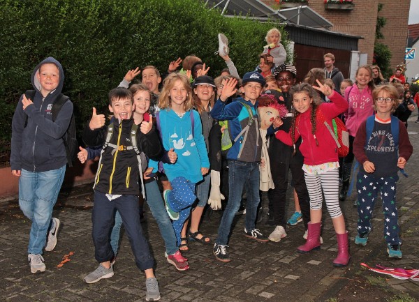 Schulkinder der GGS Poller Hauptstr. tragen den Zacheies zum Rhein